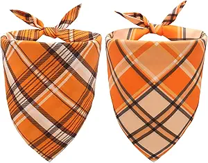 Fall Dog Bandanas,Orange Plaid Autumn Pet Scarf,Thanksgiving Outfit for Boy and Girl Dogs,Reversible Holiday Dog Costume for Medium to Large Dogs(2PCS,Orange)