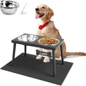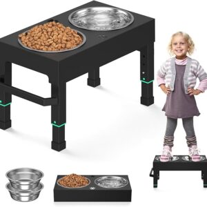 Metal Elevated Dog Bowls Stand Large Breed, Height Adjustable Raised Dog Bowls Holder with 2 Stainless Steel Food Bowls for Small, Medium and Large Canine
