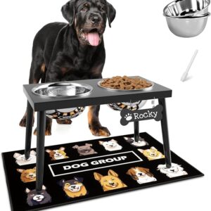 Metal Raised Dog Bowl Stand for Large and Medium Dogs, Stronger Elevated Dog Bowls with Sprill Proof Mat, Pet Food & Water Bowls 10" Tall Dogs Feeder (58OZ-Stainless Steel Pet Bowl, Mat-16x24)