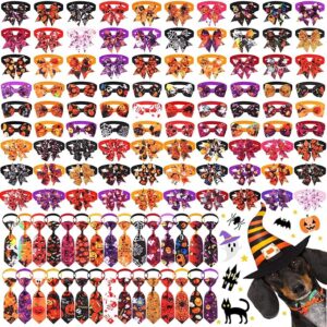 120 Pcs Halloween Dog Bow Tie Collar Set Includes 60 Pumpkin Dog Grooming Bowtie Bow Ties Pet Neckties Collar Holiday Accessories for Cat Doggy