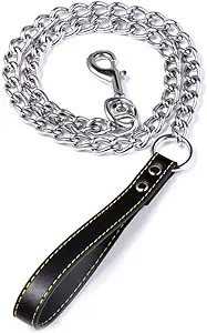 SGODA Chain Dog Leash with Leather Handle 4 Feet Black
