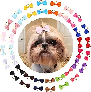 Puppy Hair Bows Small Dog Mini Rubber Bands Doggie Bowknot Pet Grooming Accessories 60pcs (30 Pairs) - Puppy Bows for Small Dogs Girl
