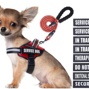 Service Dog Vest Harness and Leash Set, Animire in Training Dog Harness with 10 Dog Patches, Reflective Dog Leash with Soft Padded Handle for Small, Medium, Large, and Extra-Large Dogs (RED,S)