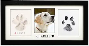Pearhead Pet Paw Print Photo Frame With Clay Imprint Kit - Wooden Pet Paw Print Frame, DIY Memorial Keepsake for Cats and Dogs, No Mess Clay for Perfect Pawprints, Ideal Home Decor and Gift, Black