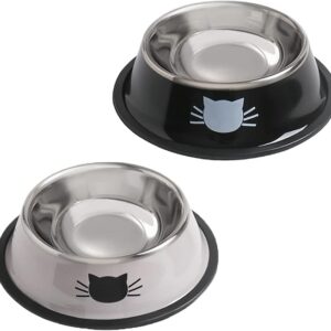 Cat Bowls for Food and Water,2PCS Rapsrk Non-Slip Stainless Steel Small Food Bowls 8 Oz Pet Bowl with Removable Rubber Base Dog Bowl,Stackable Cat Puppy Dishes Bowls with Cute Cats Painted