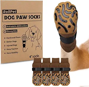PICK FOR LIFE Non Slip Dog Socks with Grippers Prevent from Licking Paws,Anti-Slip Dogs Grip Socks for Senior Dogs on Hardwood Floor(Grey,2Pairs,L)