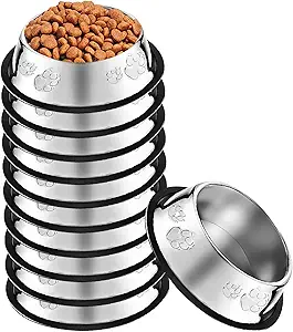 10 Pcs Stainless Steel Dog Bowl Pet Feeding Bowl with Rubber Base Non-Slip Pet Dishes Metal Dog Bowls Pet Food and Water Bowls for Small Medium Animals Kitten Rabbit (7 oz)