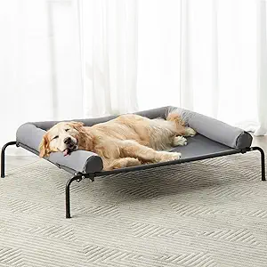 Orthopedic Dog Bed - Beds Bolster,Cooling Elevated Dog Beds with Metal Frame,Raised Dogs Bed,Easy to Assemble,Up to 50 lbs,Small (24.5" L x 24.5" W x 6.7" Th)