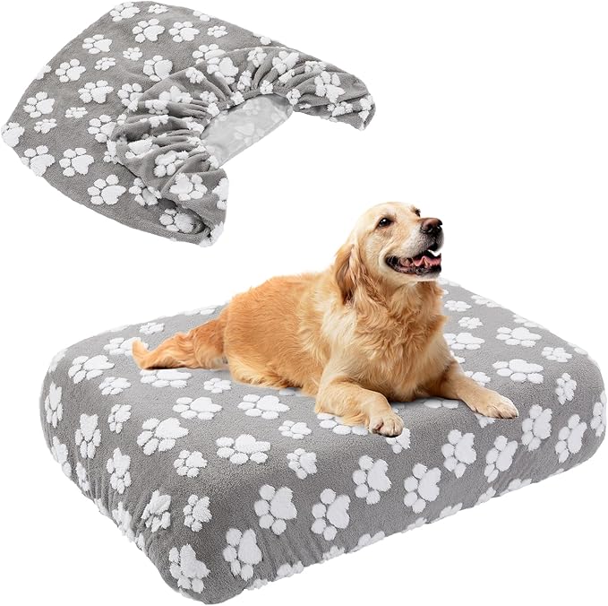 BALAPET Washable Dog Bed Cover 100% Waterproof, Soft Plush Velvet Dog Bed Covers Replacement Only, Fitted Reusable Cover for Pet Mat Bed(44x35x6in)