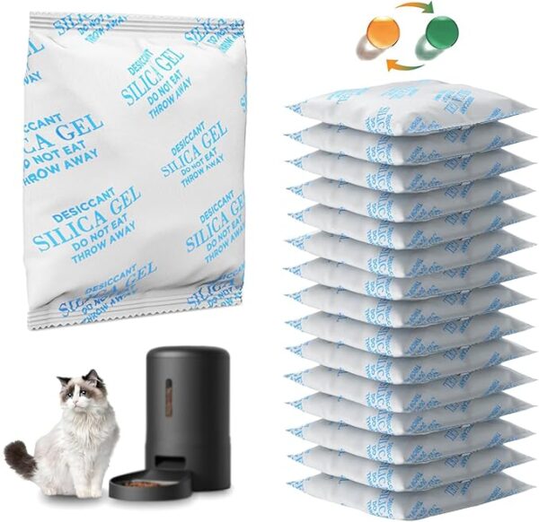 16 Packs Pet Food Desiccant Bag Compatible with PETLIBRO/PETKIT Automatic Cat Feeder, Desiccant Packs Replacement with Color Indicating for Automatic Pet Feeder(Individually Packaged)