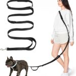 Amazon Basics Hands Free Dog Leash with Running Bag, Adjustable Waist Belt, Dual Padded Handles, Reflective Bungee Leash for Walking, Jogging, Hiking, Fits Small to Large Dogs (Up to 150 lbs)