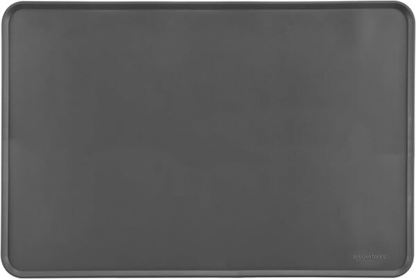 Amazon Basics Waterproof Anti-Slip Silicone Pet Food and Water Bowl Mat, 24 x 16 inches, Grey, Solid