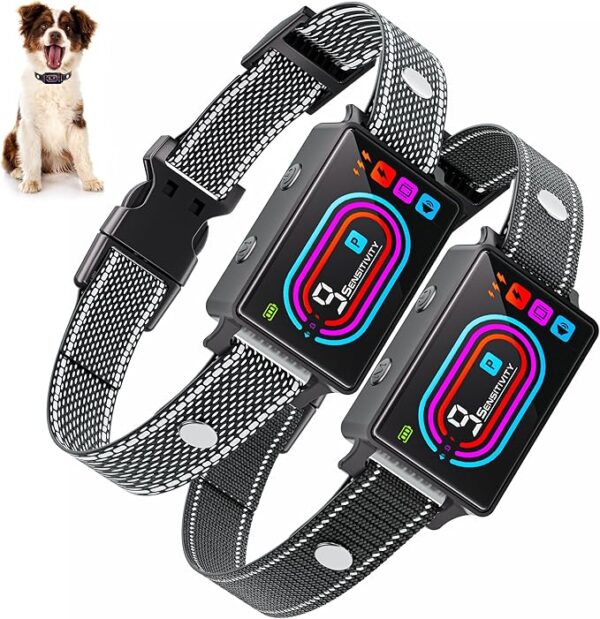 Dog Bark Collar 2 Pack, 2025 Smart Bark Collars for Dogs Large Medium Small 5-130 lbs, Bark Collar 9 Adjustable Sensitivity 5 Training Modes, Anti-Bark Training Collar Beeping Vibrator Shock