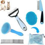 Dog Brush Grooming Kit 5PCS – Dog Brushes for Grooming, Dog Brush for Shedding,Puppy Brush and Flea Comb for Dogs, Slicker Brush Comb and Dog Hair Brush Set Blue
