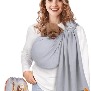 Dog Carrier Sling for Small Dogs and Cats(0 to 12 lbs), Puppy Sling Carrier with Adjustable Strap, Travel Safety Harness, Hands-Free Pet Carring Holder Travel Bag for Outdoor, Gray