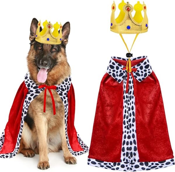 Dog King Costume, Dog Halloween Costumes King Cloak and Crown Set Funny King Prince Costume for Small Medium Large Dogs (Large)