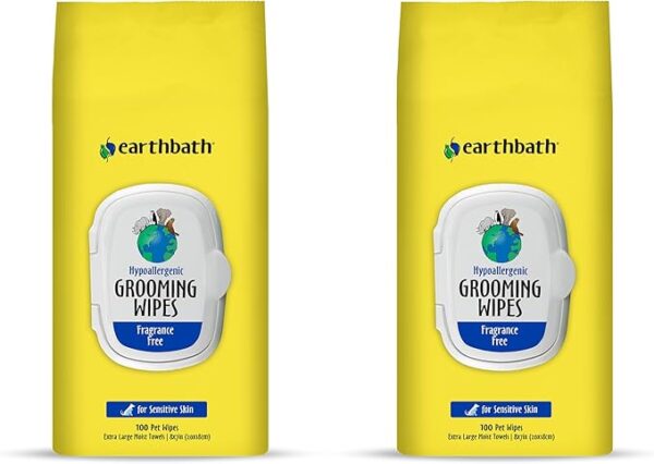earthbath, Hypo-Allergenic Grooming Wipes – Fragrance Free Dog Wipes for Paws and Butt, Best Pet Wipes for Dogs with Sensitive Skin, Made in USA, Cruelty-Free Dog Cleaning Wipes – 100 Count (2 Pack)