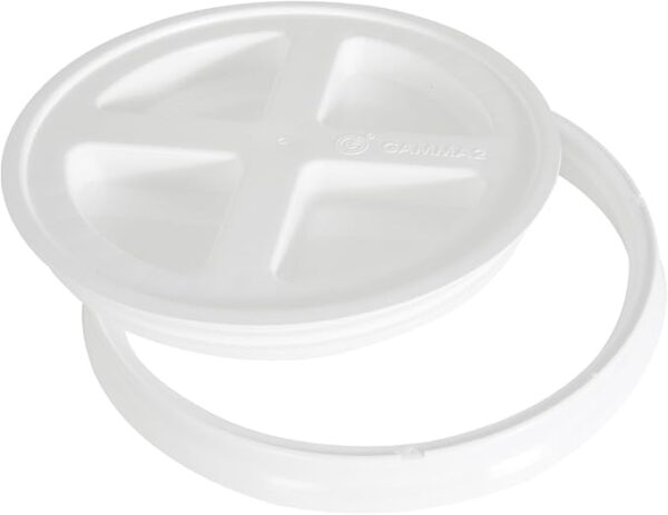 Gamma2 Seal Lid – Pet Food Storage Container Lids – Fits 3.5, 5, 6, & 7 Gallon Buckets, White, 4122E, Made in USA, Fits a 3.5 to 7 Gallon Bucket