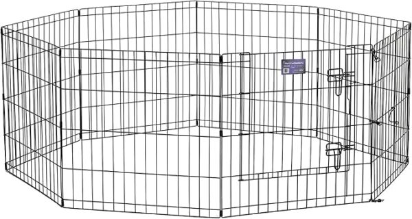 MidWest Homes for Pets Folding Metal Puppy/Dog Exercise Pen, Indoor/Outdoor Playpen with Secure Door, Provides 16 Sq Feet of Play Space, 24-Inches Tall, Black E-Coated
