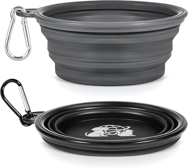 Portable Dog Bowls 2 Pack – Collapsible Silicone Travel Dog Bowls for Small, Medium & Large Dogs, Foldable Outdoor Bowl with Clip, Lightweight for Hiking Camping Backpacking?Small?
