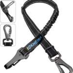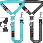 Removable Dog Seat Belt Harness for Car, 3 in 1 Pet Dog Car Seatbelt Leash, Retractable Restraint Secures to Vehicle Headrest & Adjustable Reflective Bungee Dog Seatbelt Tether, Blue and Black