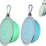 SLSON Collapsible Bowl with Cover Lids,2 Pack Dog Travel Bowls Portable Foldable Cat Water Dish Bowl for Pets Walking Parking Camping (Light Blue and Green, Small)