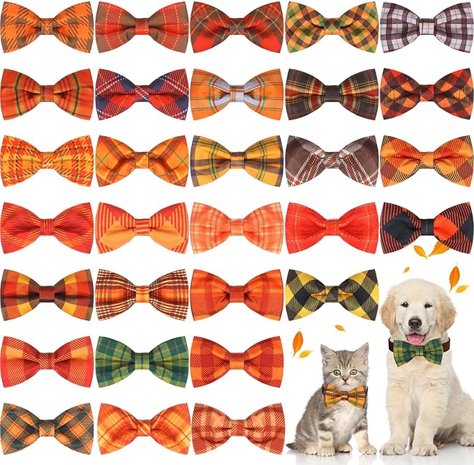Sweetude 30 Fall Plaid Dog Collar Bow Ties Bulk Autumn Dog Bowtie Thanksgiving Puppy Accessories Bows Detachable Collar Charms for Small Medium Large Dogs Cat (Classic Style)