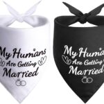 SZEE 2 Pack My Humans are Getting Married Dog Bandanas, Wedding or Engagement Gift for Couples, Dog Wedding Bandanas, Bridal Shower Gifts for Bride, Engagement Party Decorations (White & Black, L)