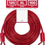 Tuff Pupper Dog Tie Out Cable 100 Feet | Dog Runner Cable for Yard 100 ft | Heavy Duty Lead | Water & Rust Resistant Industrial Strength Steel | 360 Degree No Tangle Swivel Clips