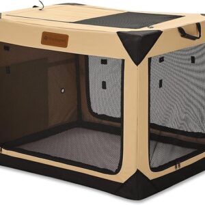 36 Inch Collapsible Soft Dog Crate for Large Dogs, 4-Door Foldable Travel Dog Kennel with Durable Mesh Windows for Indoor & Outdoor Portable Pet Crate, Soft Side Dog Crate, Beige